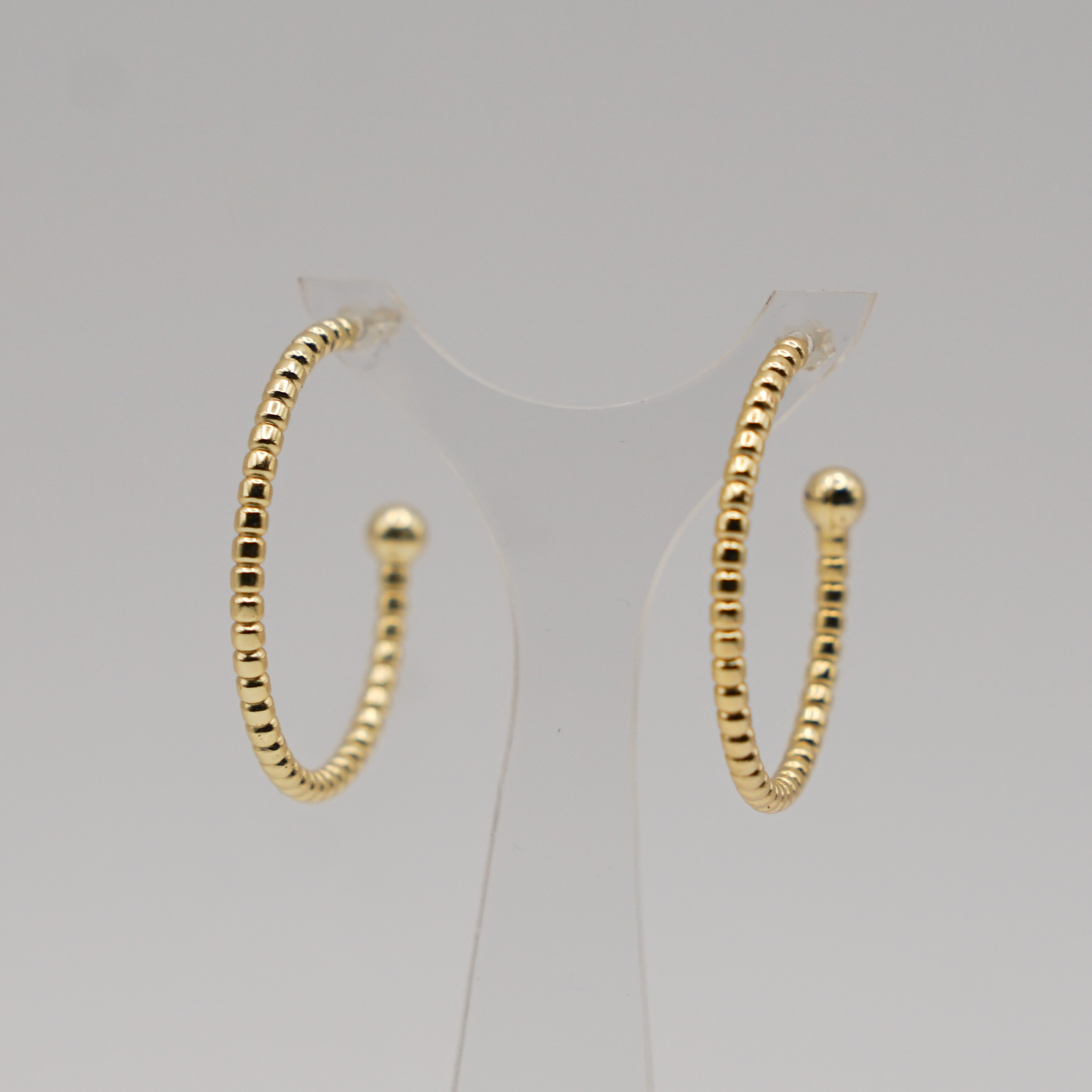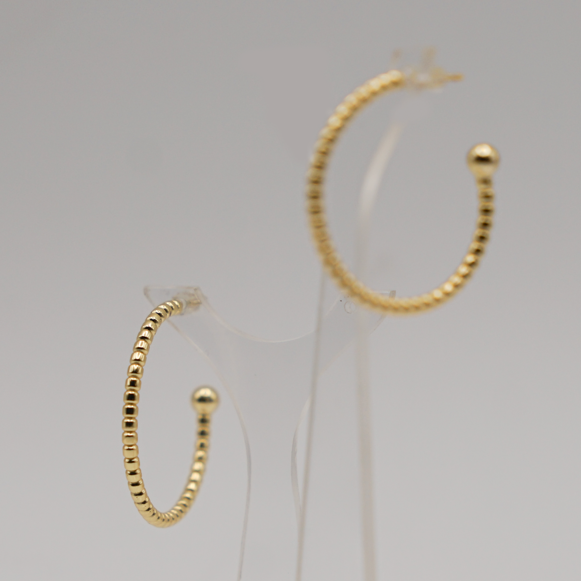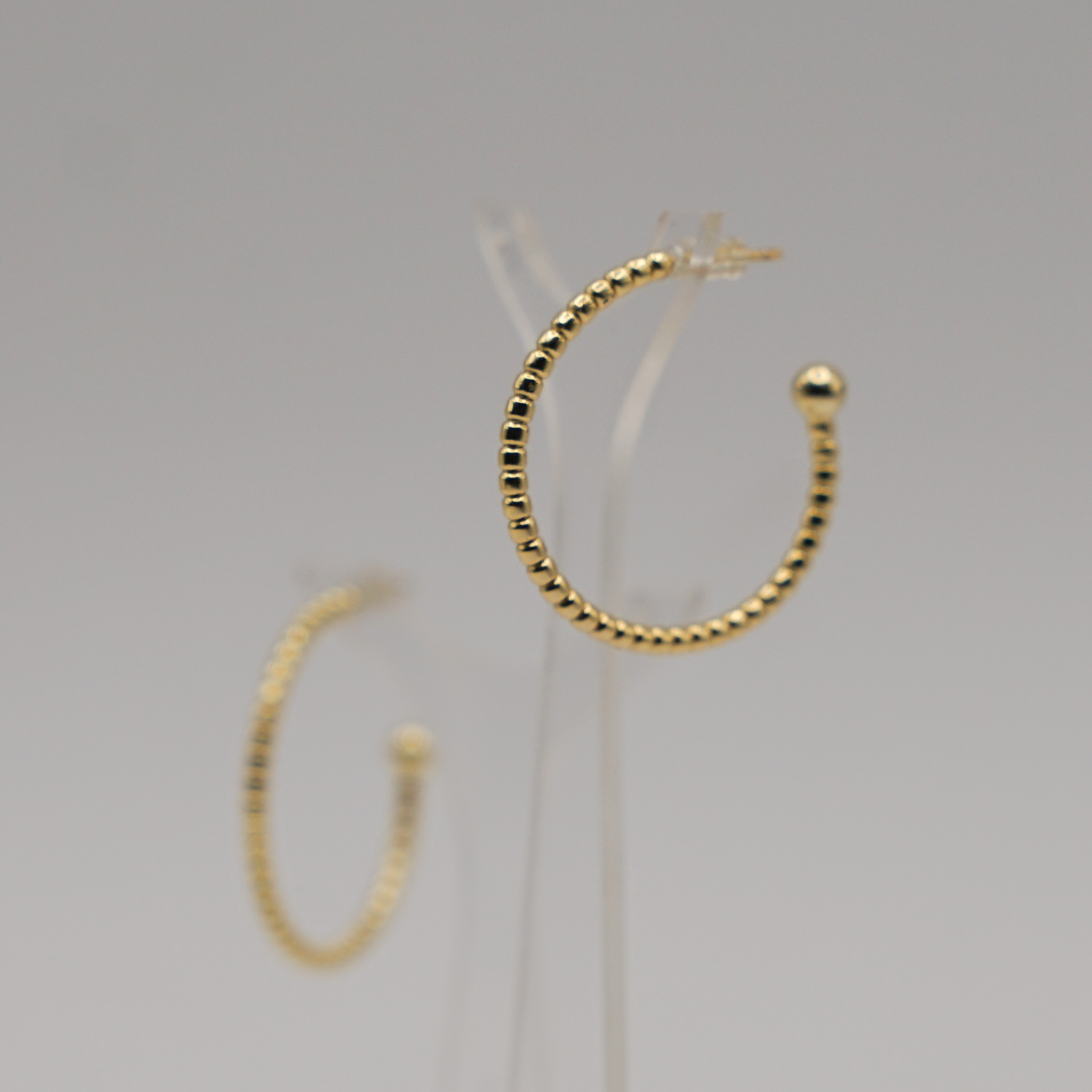 Argollas de pelotitas, plata bañadas en oro. Medida: Largo 3 cm/Ancho 3 cm.