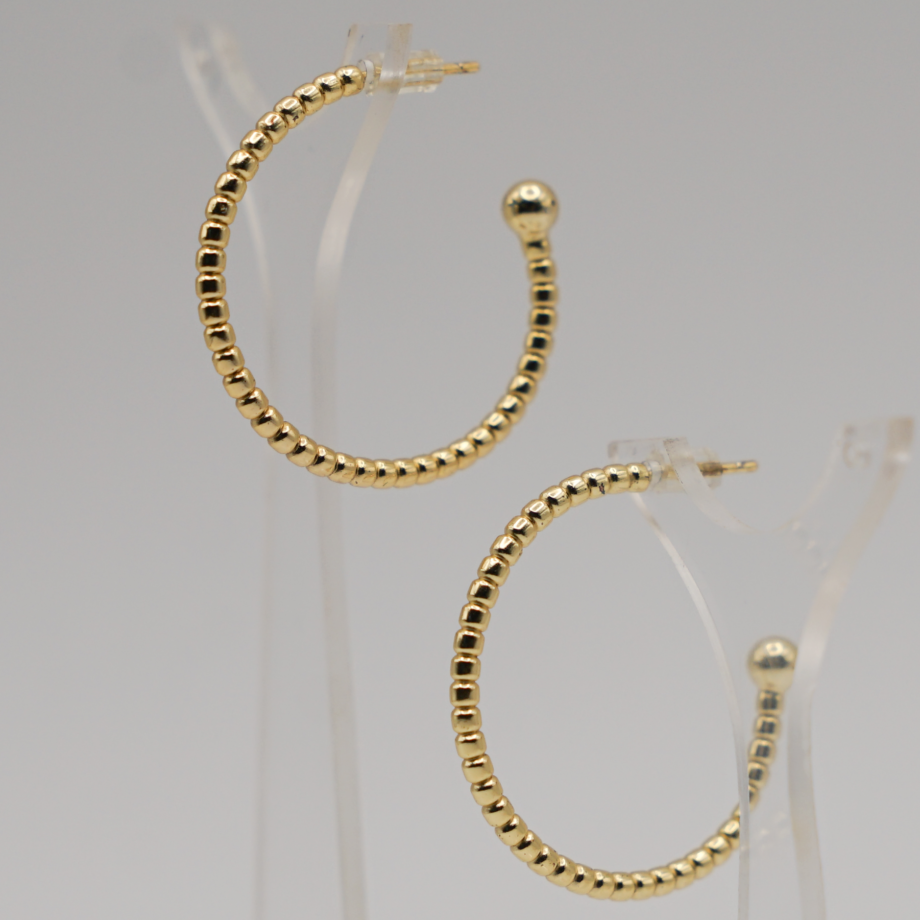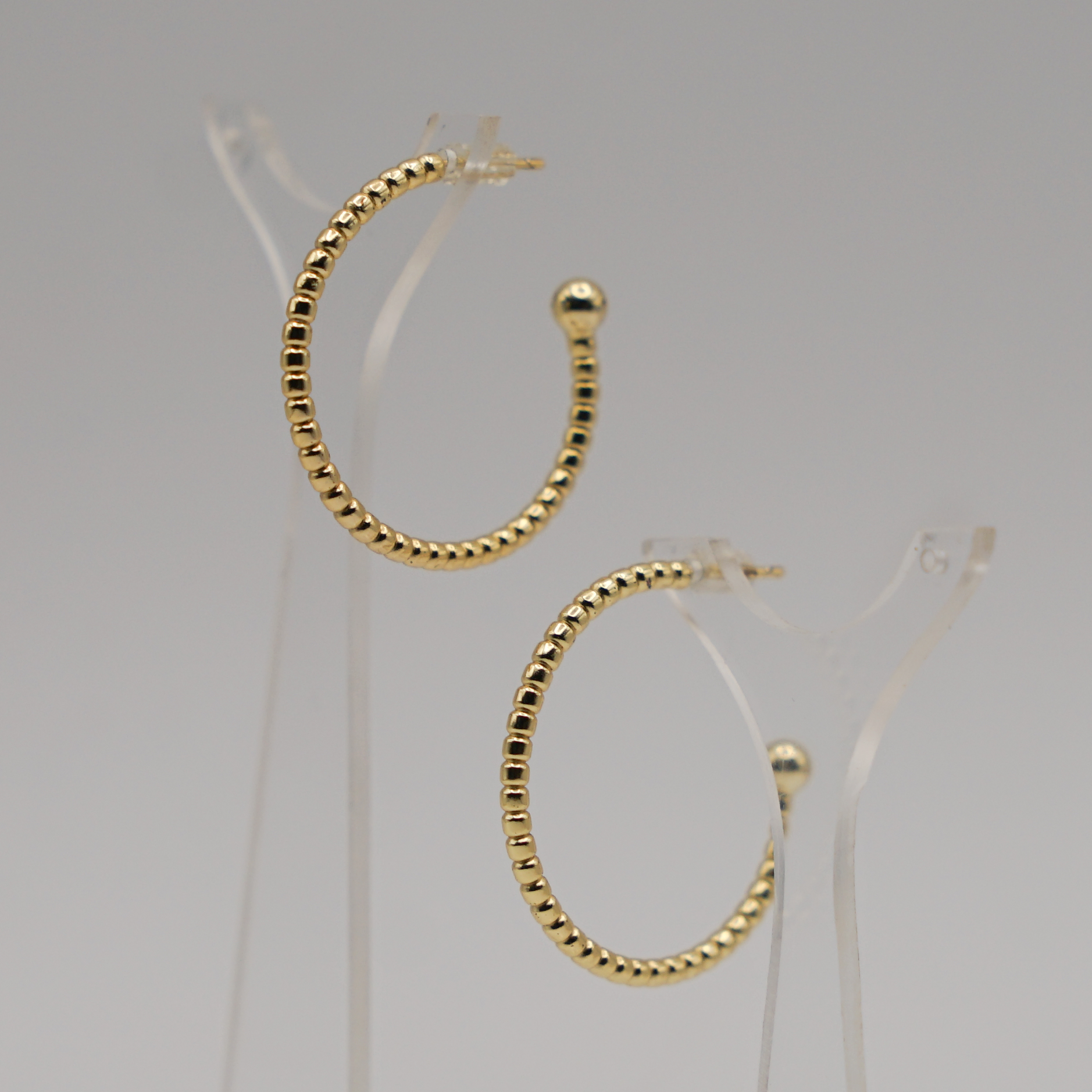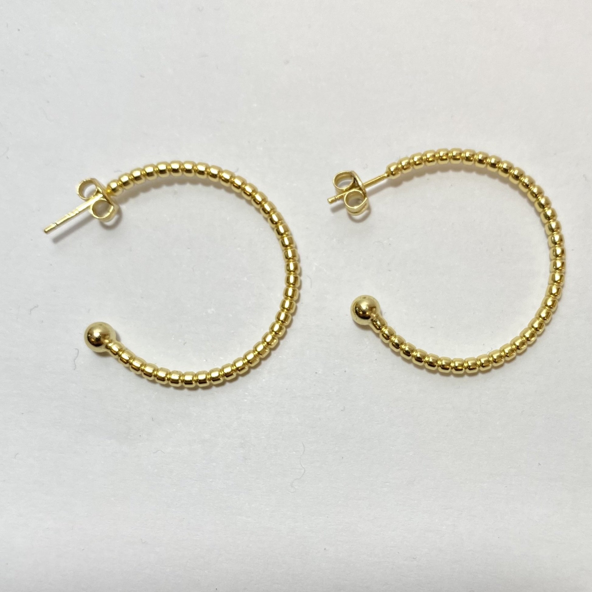 Argollas de pelotitas, plata bañadas en oro. Medida: Largo 3 cm/Ancho 3 cm.