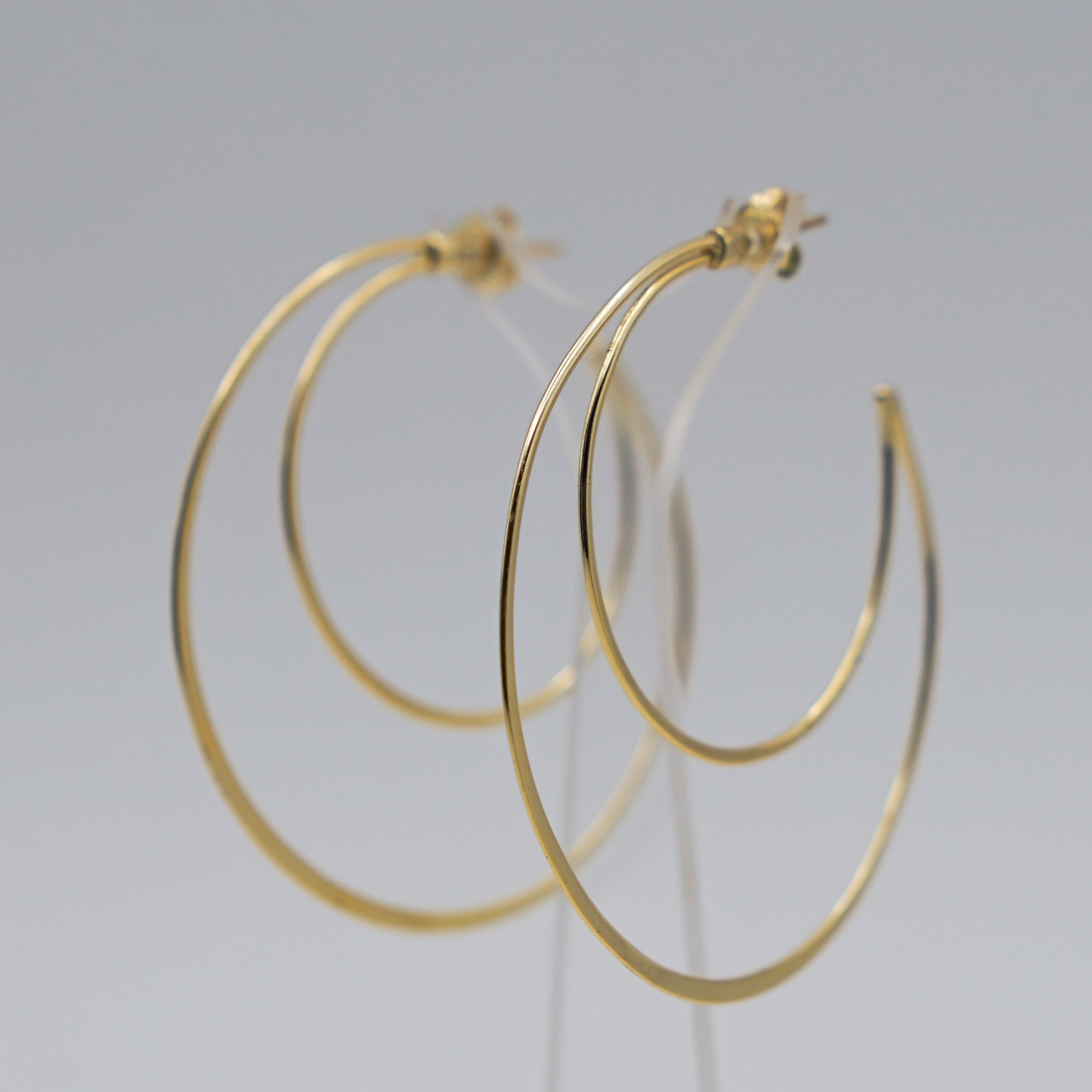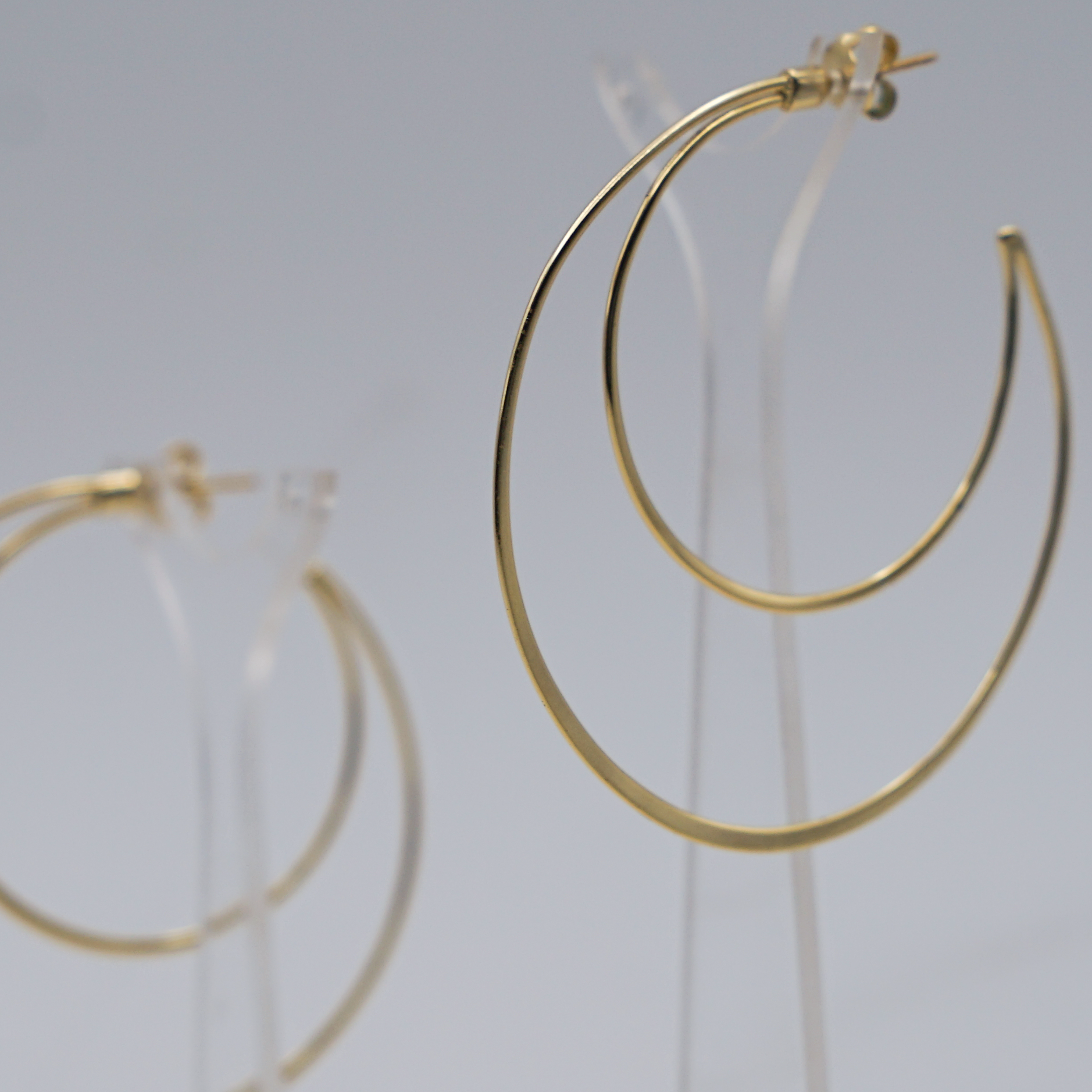 Aros de plata bañados en oro, argollas en forma de luna. Medidas: Largo 5,5cm/Ancho 5,5cm.