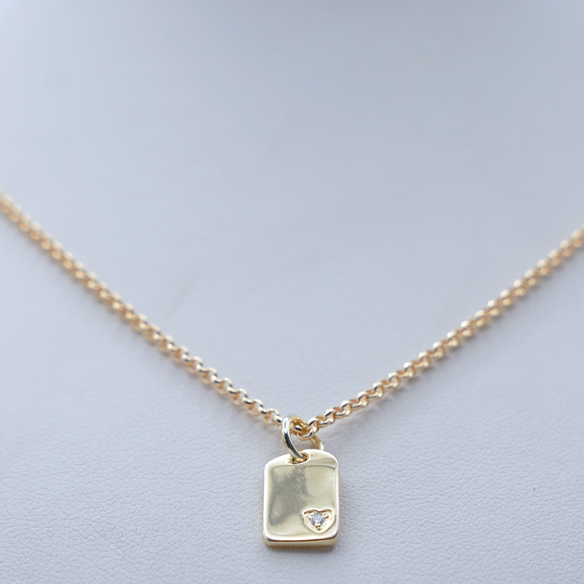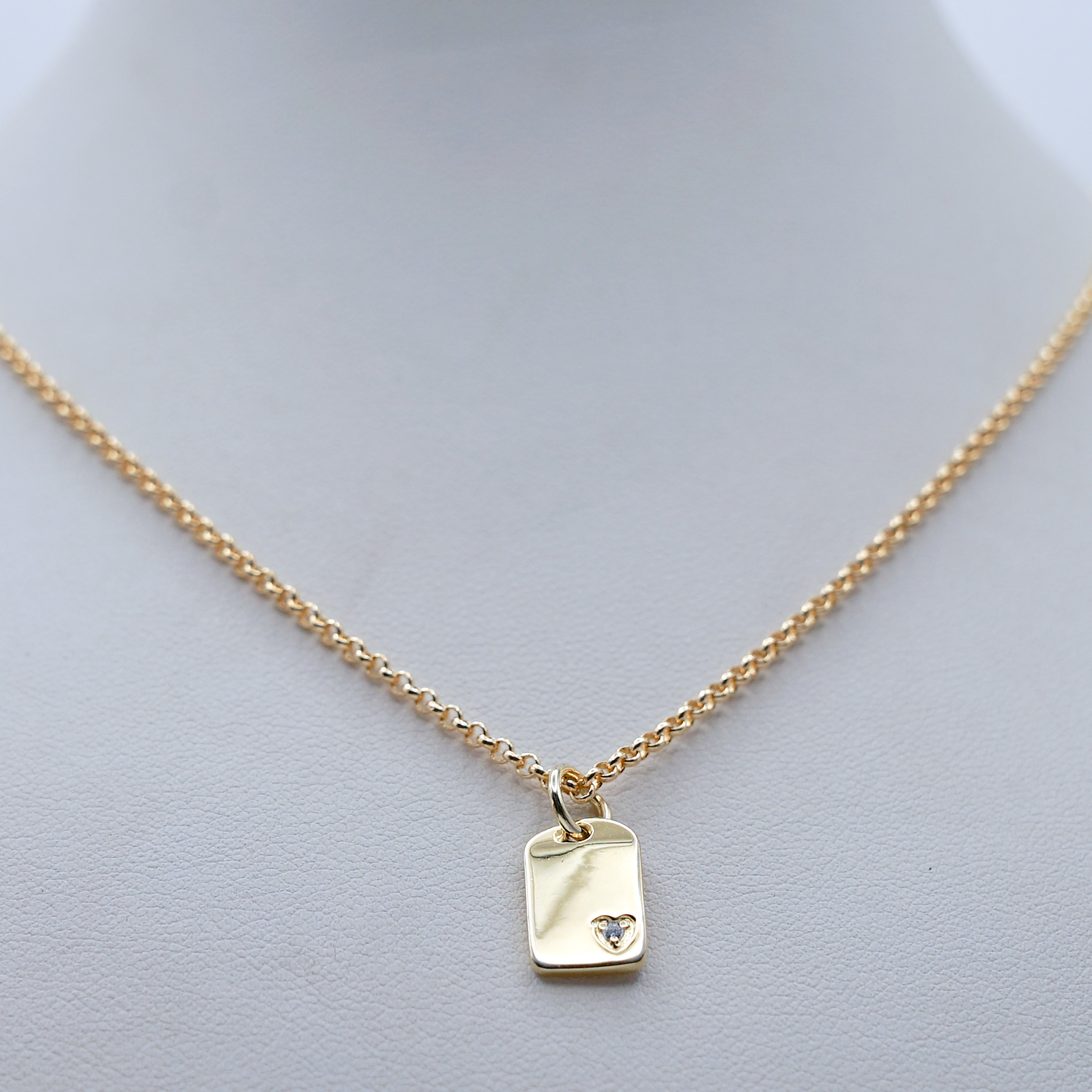 Collar de plata 925 bañado en oro con colgante cuadrado con detalle de corazón de circon