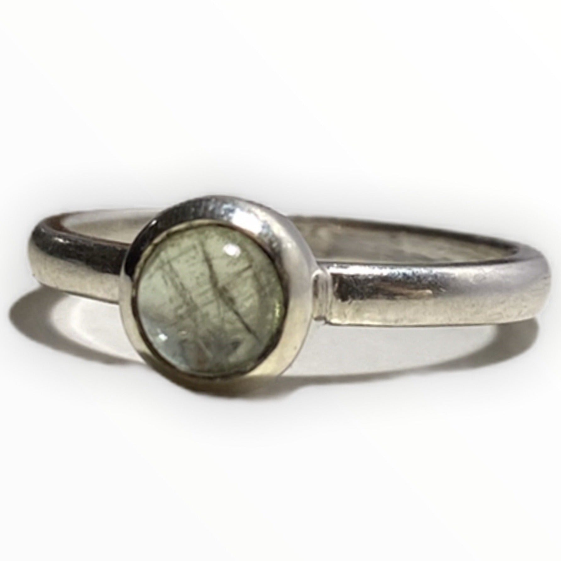 Anillo de plata con engaste de turmalina verde. Medidas: Nº 12