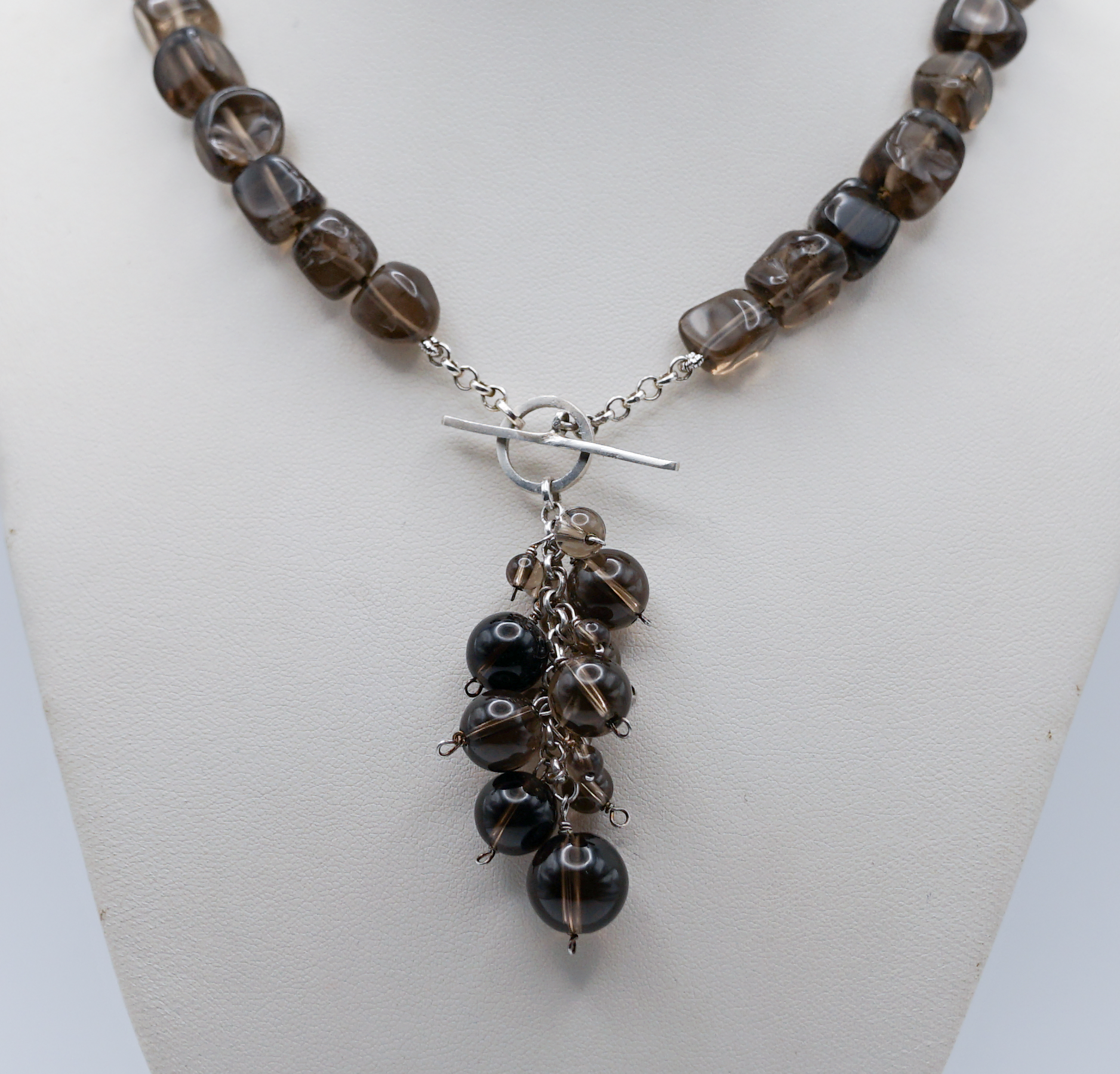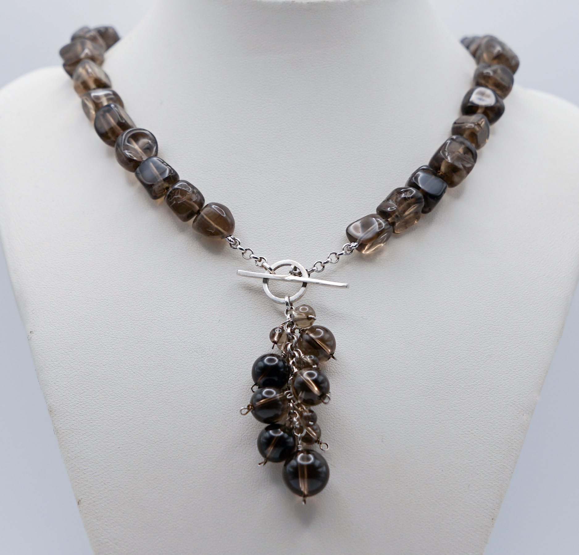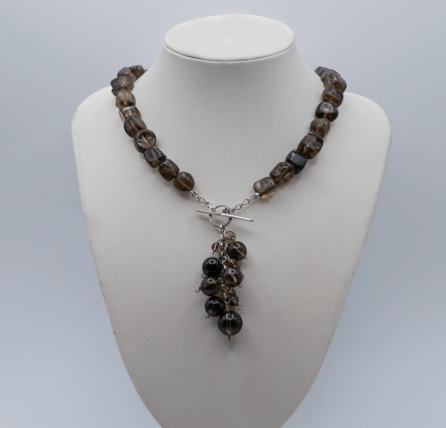 Collar de Cuarzo Fumé y Plata, hecho a mano.