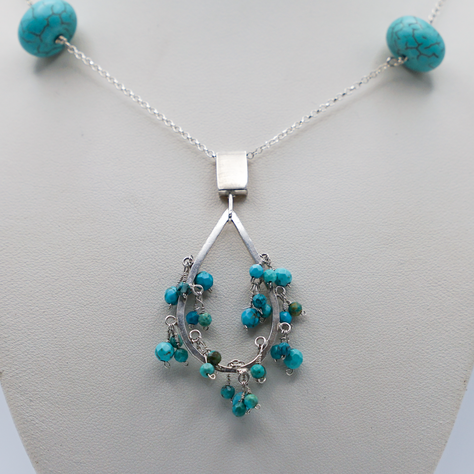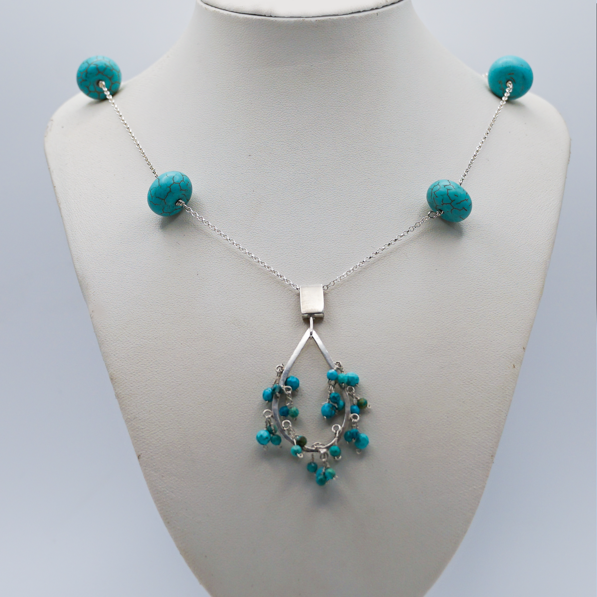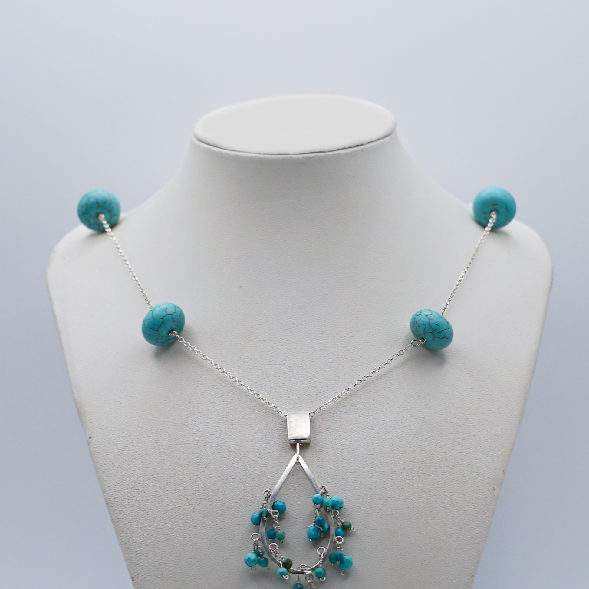 Collar de plata con piedras de jade entorchado a la cadena con colgante en forma de gota con Jade.